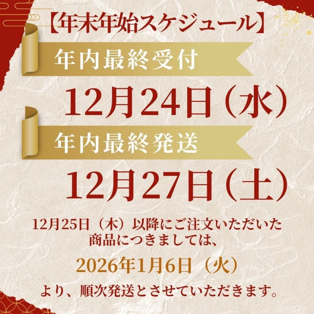 ・年内最終発送:12月27日(土)